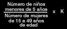 La razón de niños a mujeres es el número de niños menores de 5 años por 1.000 mujeres en edad reproductiva durante un año determinado. Esta medida puede calcularse de censos nacionales o de datos de encuestas, proporcionando así datos de fecundidad donde de otro modo no estén disponibles estadísticas de natalidad.