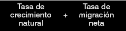La tasa de crecimiento también puede calcularse utilizando las tasas de aumento natural y migración neta: