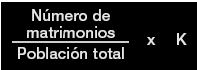 La tasa de nupcialidad (denominada también la tasa bruta de nupcialidad) es el número de matrimonios por cada 1.000 del total de habitantes durante un año determinado. Esta tasa se calcula utilizando el número de matrimonios -no el número de personas que se casan- e incluye tanto primeras como otras nupcias.